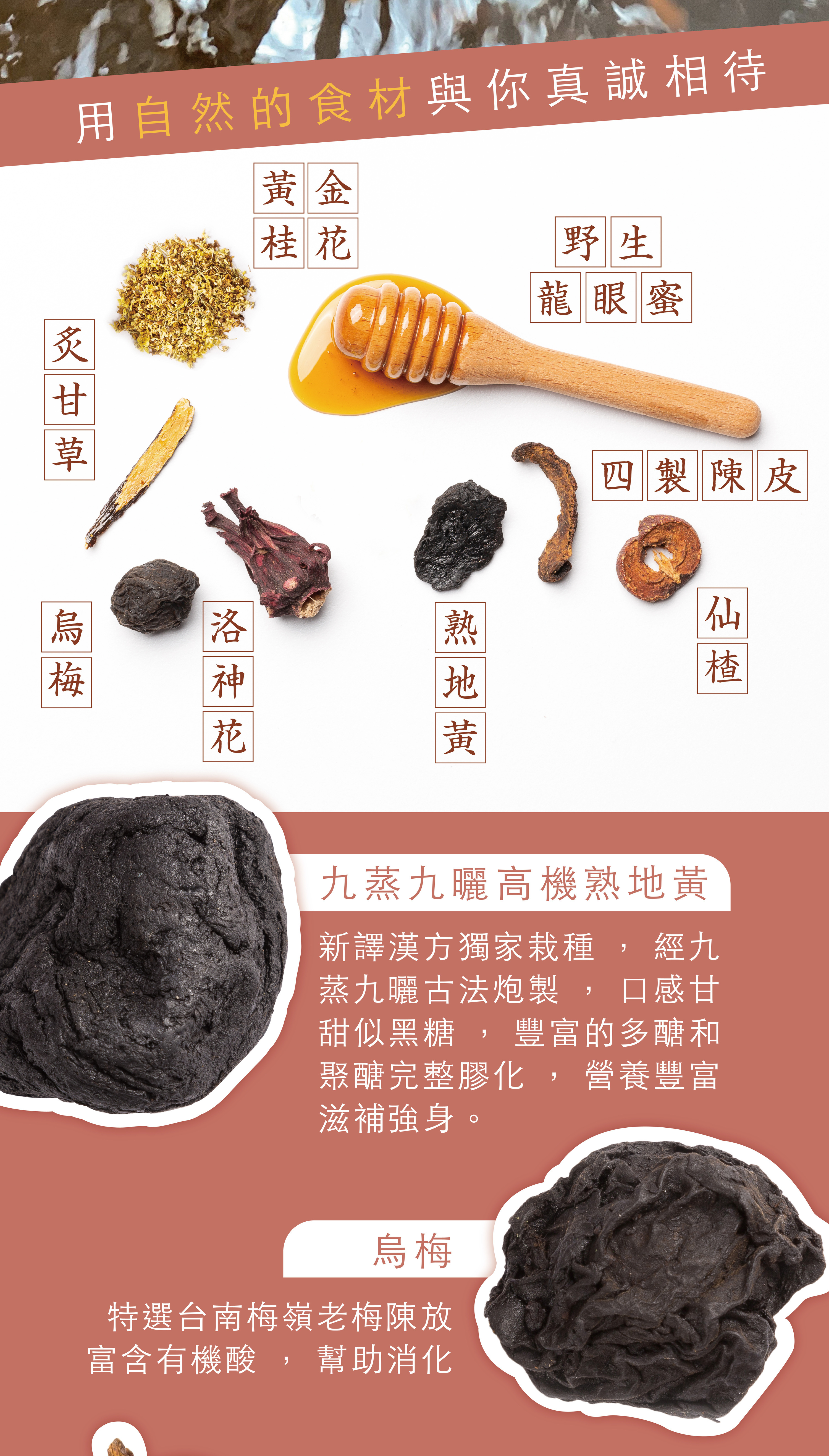 ‧ 100%自然漢方食材,通過國家高規格食品級檢驗; 380項農藥、重金屬未檢出、不添加防腐劑及食品添加物
