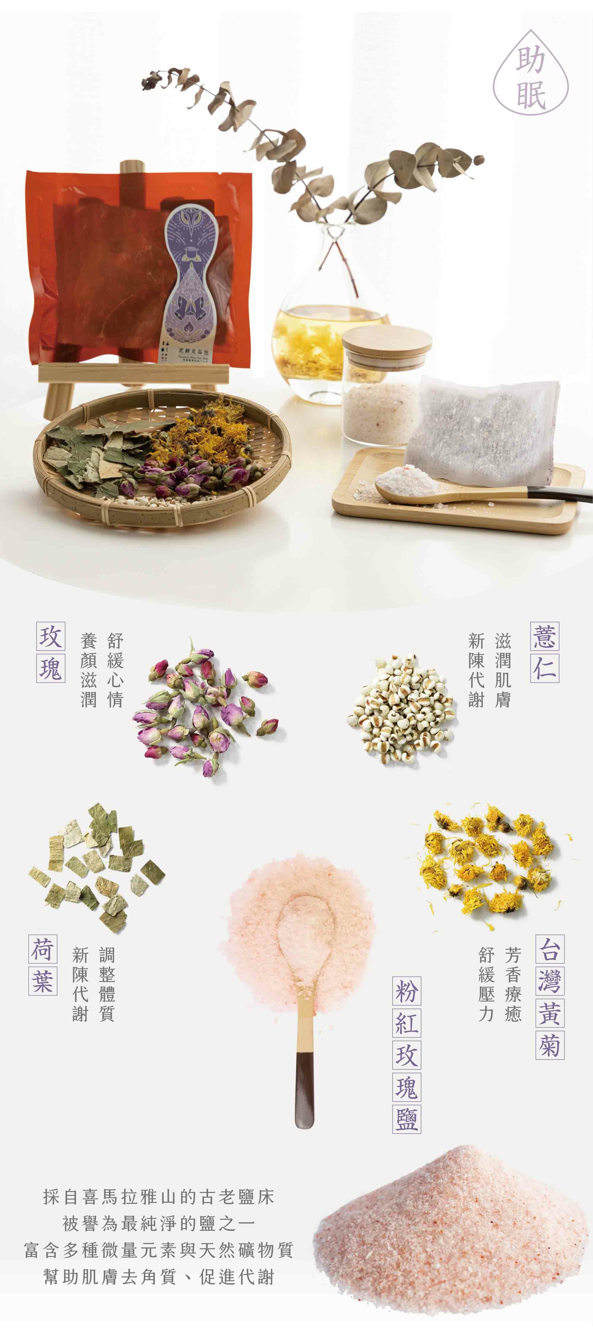 ‧ 特選 喜瑪拉雅山粉紅鹽 與 4 種漢方草本,無添加化學成分與香精