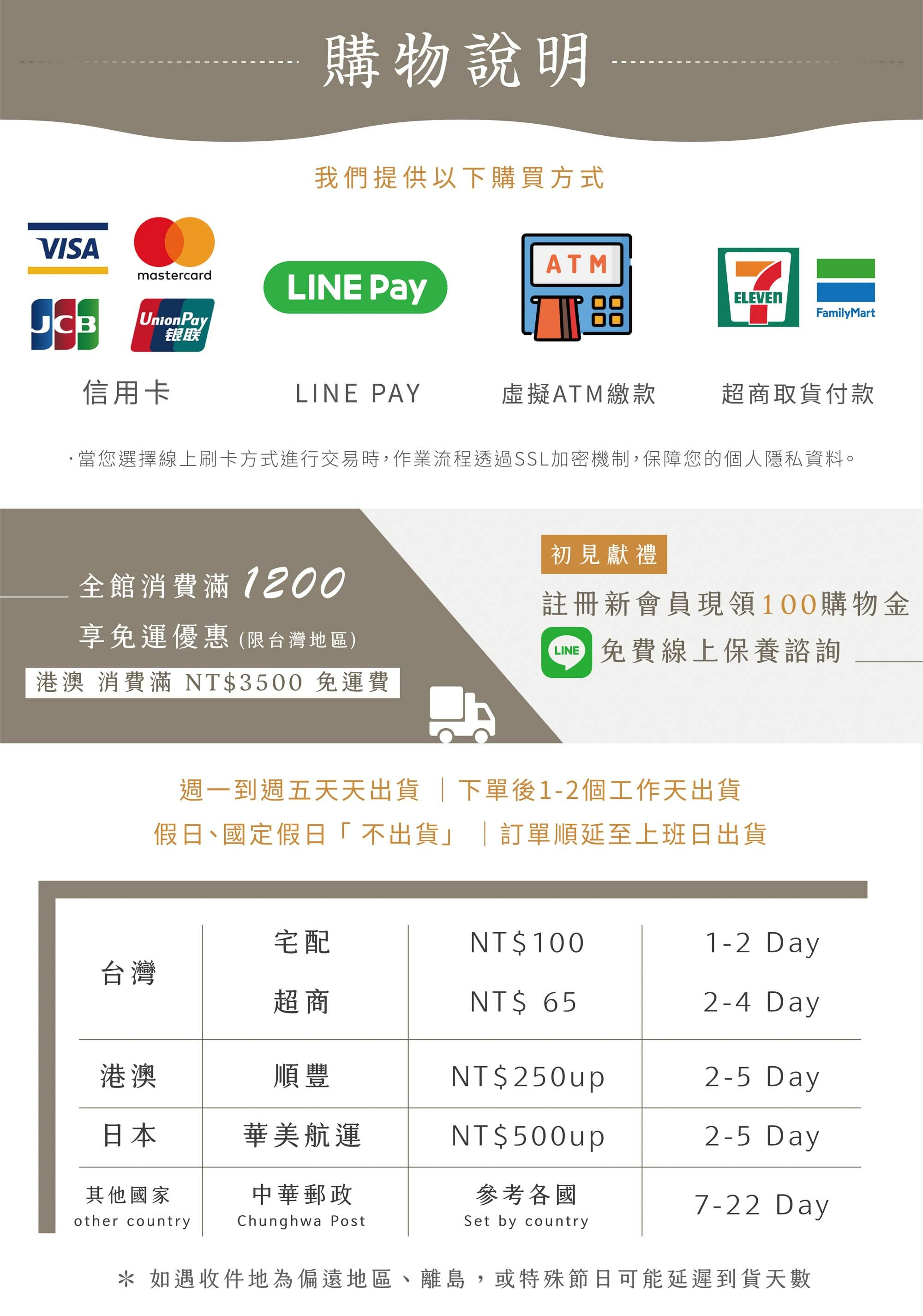 全店,台灣地區滿 1,200 免運費
