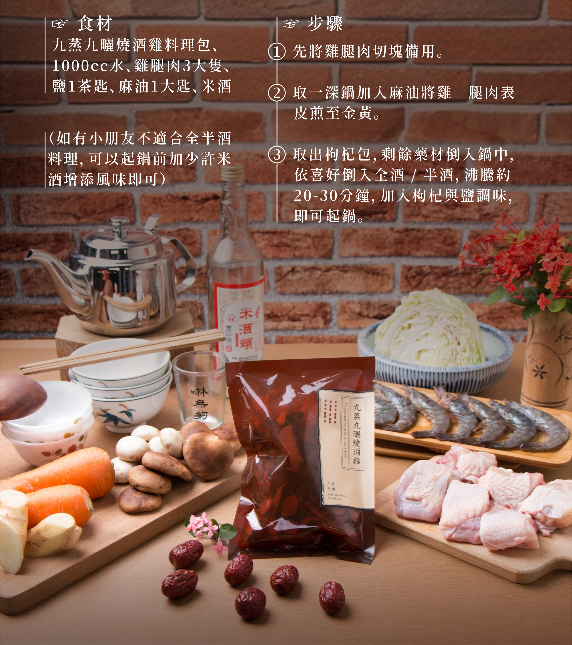 ‧ 溫和不上火,可全酒/半酒料理,燉煮排骨、雞肉等