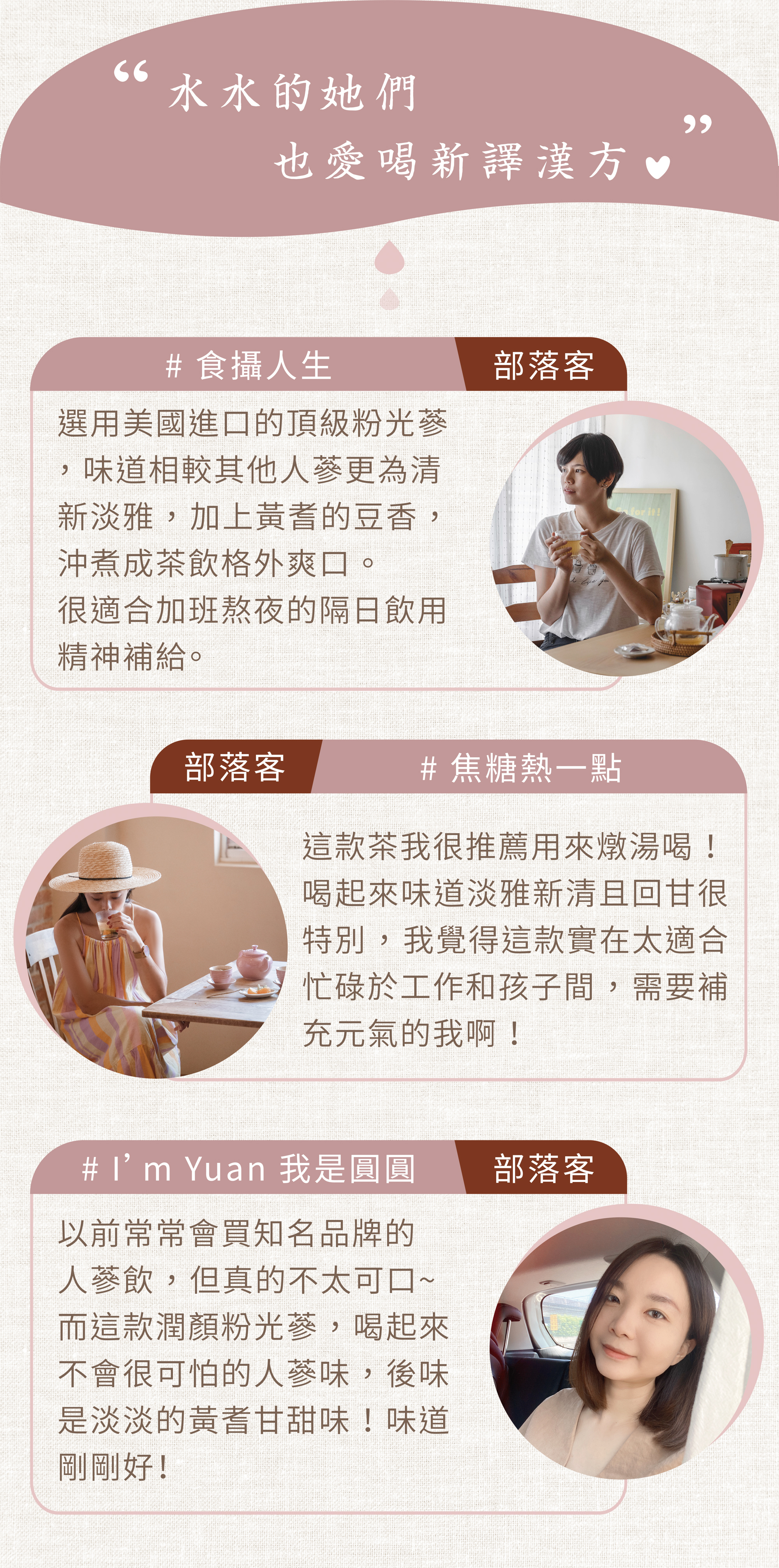 ‧ 淡淡清雅蔘香,溫和涼補回甘,日常飲用無負擔
