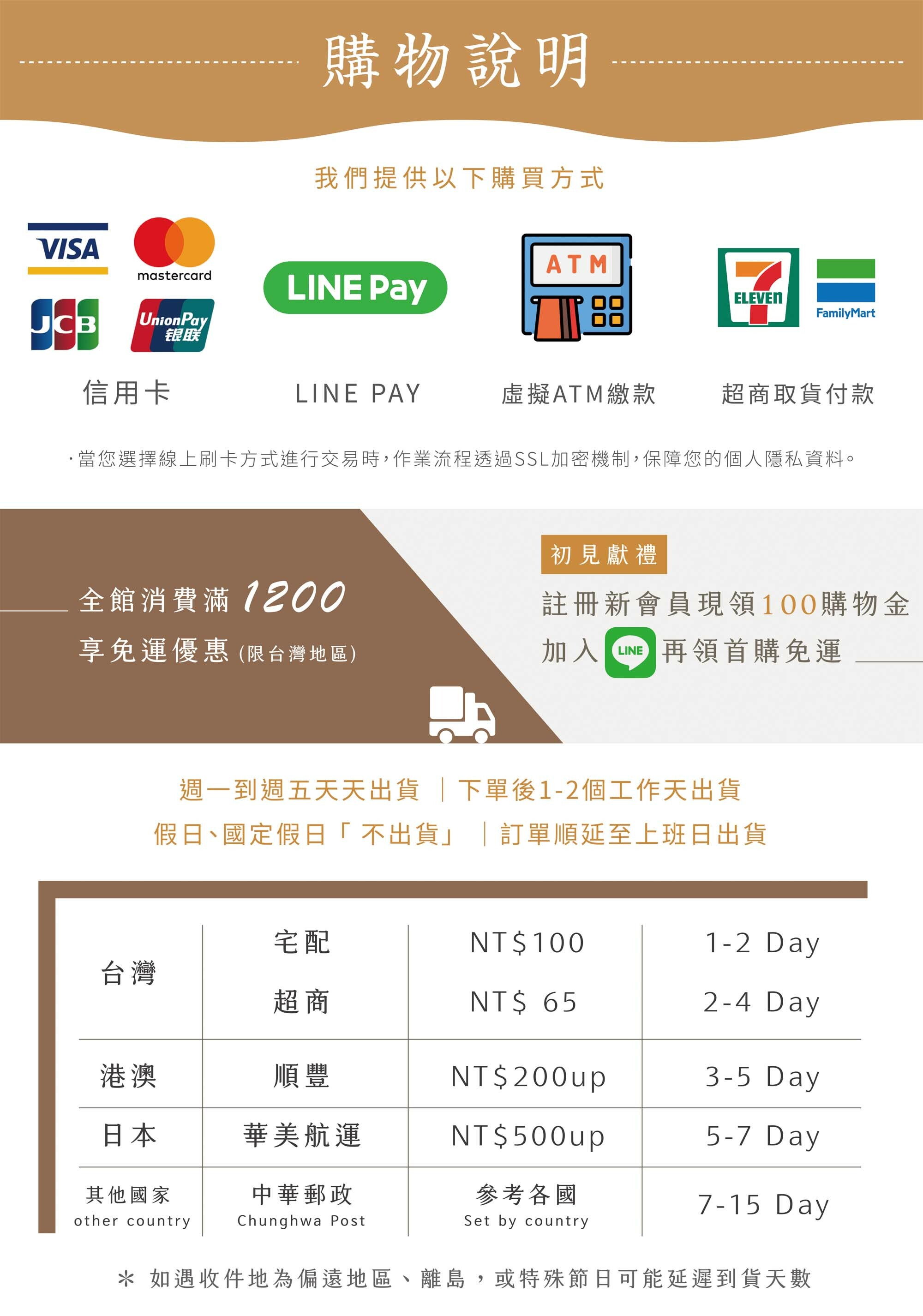 • 宅配到府 (信用卡/Line Pay/ATM匯款)